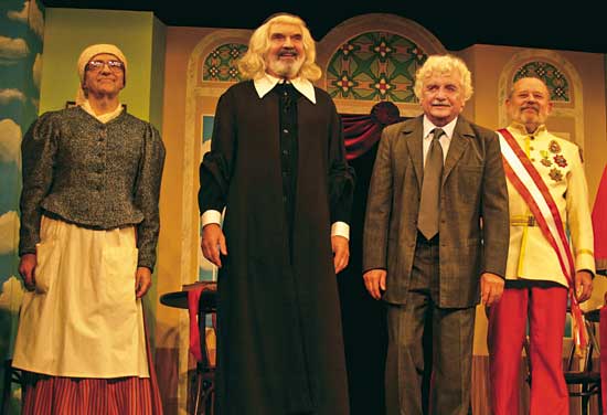 ...Inu, doba se změnila a je nejvyšší čas zrevidovat, zda dosud vytvořená umělecká díla jsou správně genderově vyvážená. V první řadě je třeba zakázat odporně šovinistický divadelní spolek Járy Cimrmana, který nejen že ženy ve svém čistě mužském kolektivu netrpí, ale ještě je hanebně dehonestuje karikováním ženských rolích v mužském podání.