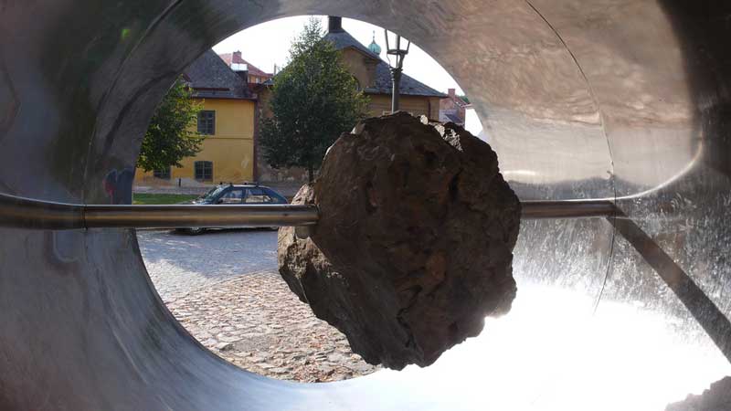 A stejně tak mi zapadly do celého prostoru města i zámku objekty Aleše Veselého. Jeho obří koule, masivní plechy, kameny spojené s ocelí, monstrózní konstrukce v čele s monumentálním dílem Kaddish (z konce 60. let), to vše může zprvu působit šokujícím dojmem.