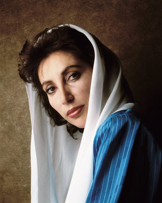 Byla nejmladším vůdcem a zároveň první ženou v čele muslimské země. Pro milióny lidí nejen v Pákistánu se stala idolem, pro nesčetné šiky odpůrců nenáviděným nepřítelem. S módními brýlemi, exkluzívními šátky a výraznou rtěnkou se dostala na prestižní seznam padesáti nejkrásnějších lidí světa podle proslulého časopisu People. Její návrat z exilu stál život 140 lidí a zdraví dalších 450. Dnes drží čtyřiapadesátiletá dědička mocného politického klanu, obviněná z mnohamiliardové korupce, klíč k politické stabilitě Pákistánu.
